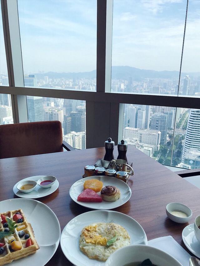 综合了W、四季和柏悦,还是选择了柏悦,酒店非常新,设计风格很喜欢,65楼意大利餐厅,68楼中餐厅,价格人均在200+,入住在55楼,仿佛住在云端,感觉很棒。