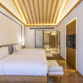 酒店环境非常好,还有两只网红羊驼,很可爱,但是舒适大床房比较小,卫生间都没有门,设计不太合...