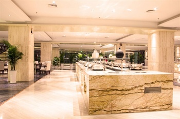 | 餐饮服务 | 咖啡厅、餐厅包间、自助餐厅、早餐厅、茶室、宴会厅、大堂吧 一层荷韵西餐厅营业面积:2460平米,共350个餐位,主营多国自助餐; 二层和轩中餐厅营业面积:1600平米,包间23个和150个散台,主营粤菜,另有一些特色的陕西菜。 |